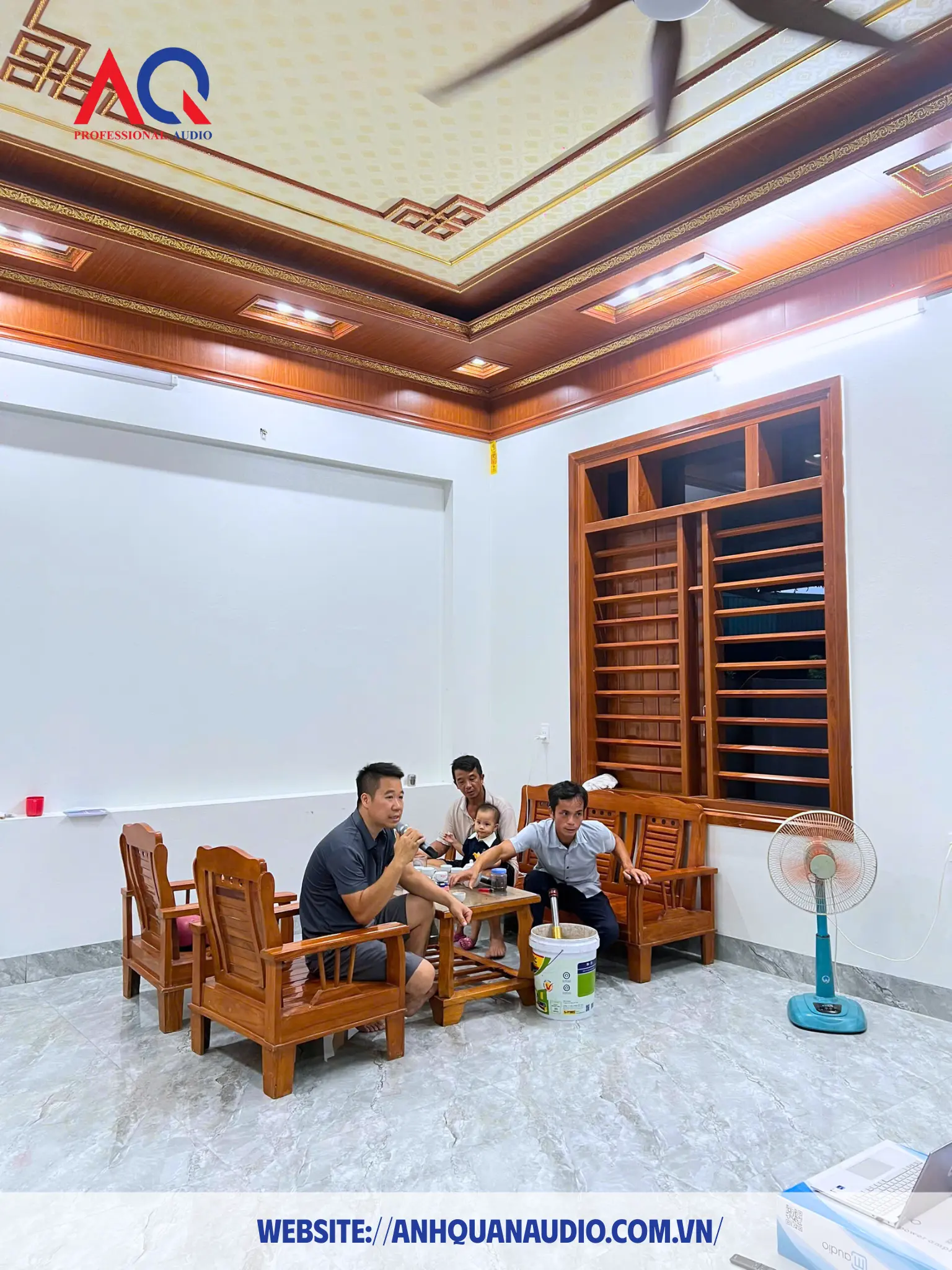 Đội kỹ thuật Anh Quân Audio đã đến tận nơi, đo đạc và tinh chỉnh từng chi tiết âm thanh, đảm bảo âm vang vừa đủ mà không bị dội trong không gian phòng khách nhỏ.